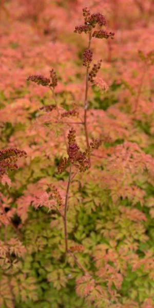 Sought after for its attractive neat mounds of filigree foliage and arching plumes of delicate creamy-white flowers produced in early summer. Â Once it has finished flowering leave the seedheads on, as they add structural interest, and as the autumn approaches both they and the foliage turn the most amazing oranges and reds.