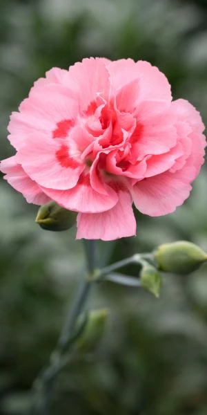 ‘Doris’ produces lots of fragrant clove-scented double flowers with pale pink petals tinted red at their base above mounds of finely cut grey-green foliage.