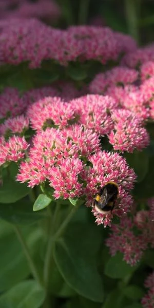 Large, flattish clusters of pale pinkish-green buds, open to small, pale pink flowers that bronze to dark pink/red as they mature. These are held on sturdy, grey-green stems with very gently toothed leaves. ‘Herbstfreude’ is an iconic cottage garden plant, whose popularity is well-deserved for its showy, long lasting and ever evolving display.