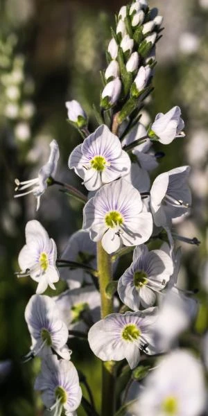 Spires of beautiful pure white flowers, with striking blue veins appear in spring. The flowers rise from basal rosettes of lance-shaped leaves, which form a carpet of green throughout the year. Removing the flowers after they are spent will keep the plant tidy.